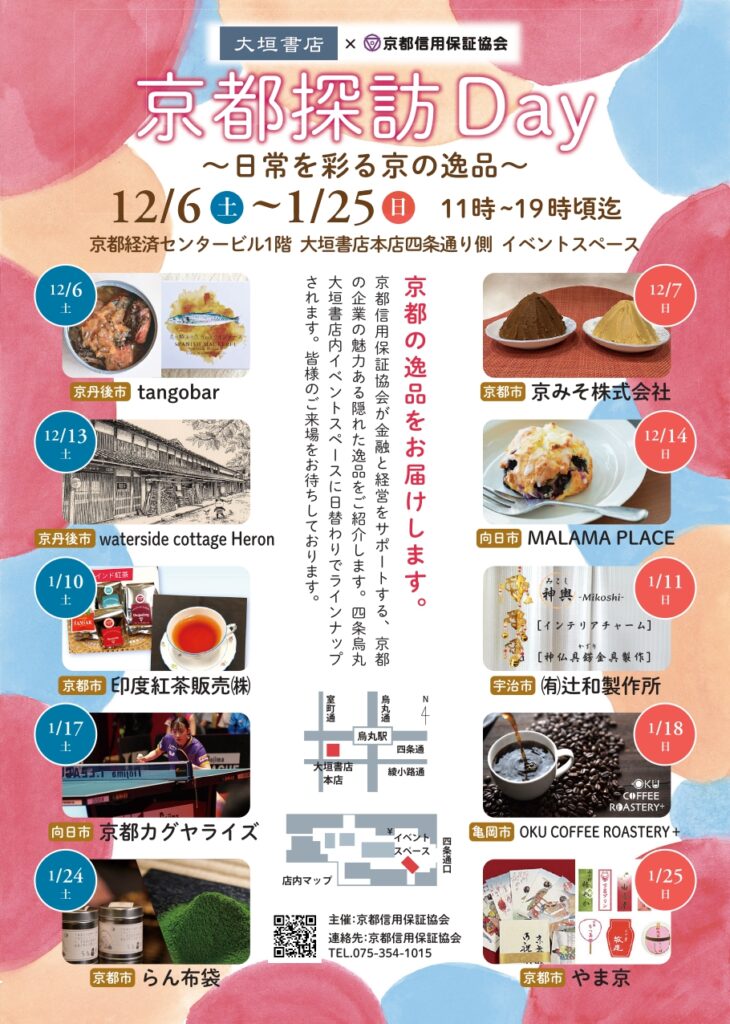 中小企業者への経営支援の一環として、新規顧客の獲得及びマーケティング機会を提供するため、株式会社大垣書店と連携し、販売促進支援事業「京都探訪Day」を開催します。